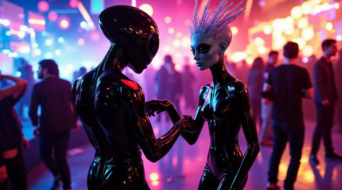 - Juega con los materiales: Vinilo, cuero, malla y látex añaden profundidad al look y capturan la esencia industrial del género. No temas experimentar con texturas brillantes o acabados metálicos.