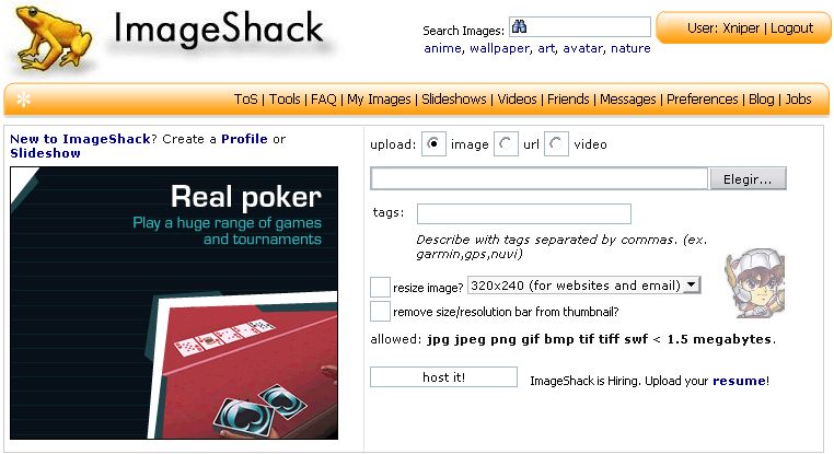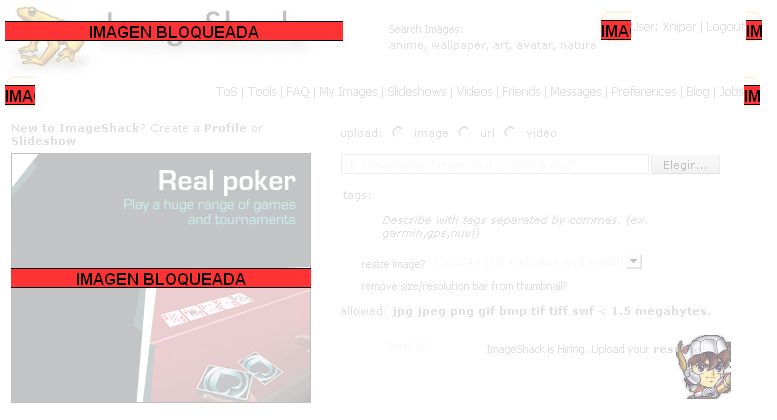 Un gran ejemplo de esto por ejemplo es la página Imageshack.us y así podemos bloquear la molesta publicidad tanto que aceleramos la descarga de la página a nuestro browser: