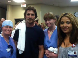 Carey Rottman, un joven de 27 años que se recupera en el Centro Médico de Aurora,publicó dos fotos con la estrella en su página de Facebook. En las imágenes, Bale sonríe arrodillado al lado del paciente, que reposa en la cama de su habitación.