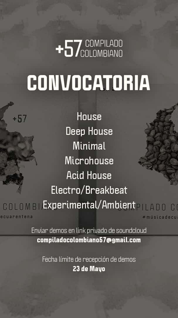 “En Colombia hay muchos artistas emergentes y mucho talento por explorar, es por esto que queremos invitar a todos los productores que se vean identificados con los géneros mencionados a enviar sus demos y ser partícipes de la tercera edición de +57 la cual saldrá a la venta exclusivamente a través de Bandcamp el 4 de junio: Los ingresos recibidos de las ventas se dividirán entre todos sus participantes.”