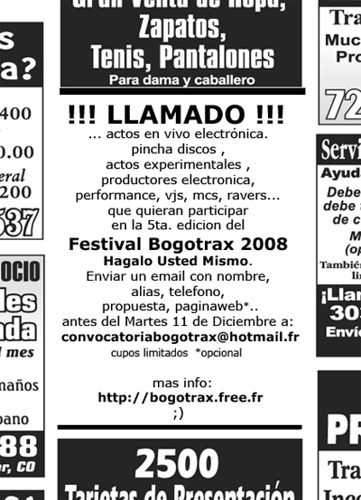 todo el que quiera participar en el festival de cultura libre mas importante del pais, un intento unico en nuestra nacion, completamente libre, gratis y para todo el mundo. Cero discriminaciones y durante 10 dias, recorriendo parques, universidades, discotecas, bares, carceles…una forma de llevar la cultura digital hasta el rincon mas pequeño de la ciudad de Bogota.