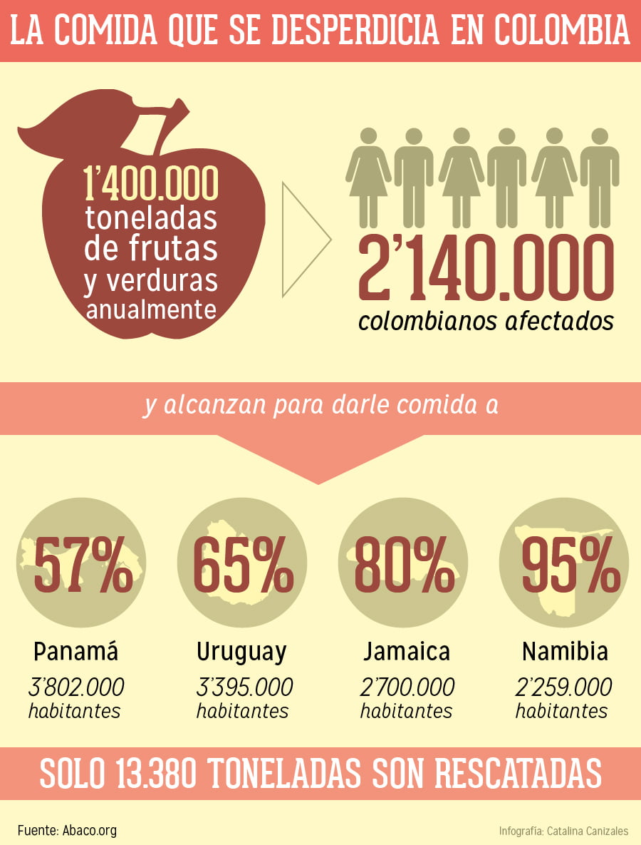 La asociación de bancos de alimentos (Abaco) agrupa a cerca de 20 instituciones y se encarga de distribuir las donaciones otorgadas por las grandes cadenas a más de 1.410 fundaciones. Esta institución dice que a través de un estudio realizado en 2012 se encontró que 1’154.000 toneladas de frutas y 261 mil toneladas de verduras se pierden en la poscosecha. Es decir: no llegan ni a comercializarse.