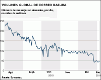 La cantidad de correo basura (o spam, en inglés) que se envía en todo el mundo ha registrado una dramática caída en los últimos meses.