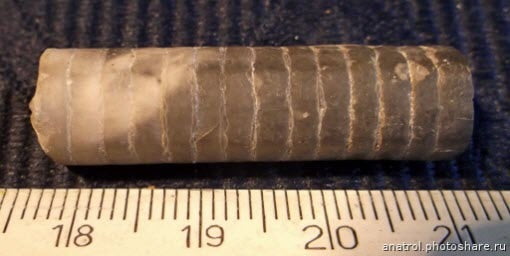 Los troncos de crinoideas pueden presentar diversas formas, pero hay una que coindice completamente con el de la roca de Kaluga. Macada con una flecha amarilla.