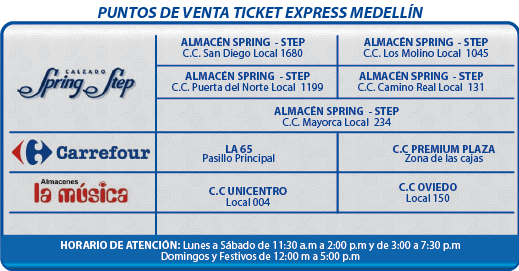 ► PUNTOS DE VENTA DE LAS BOLETAS EN MEDELLÍN