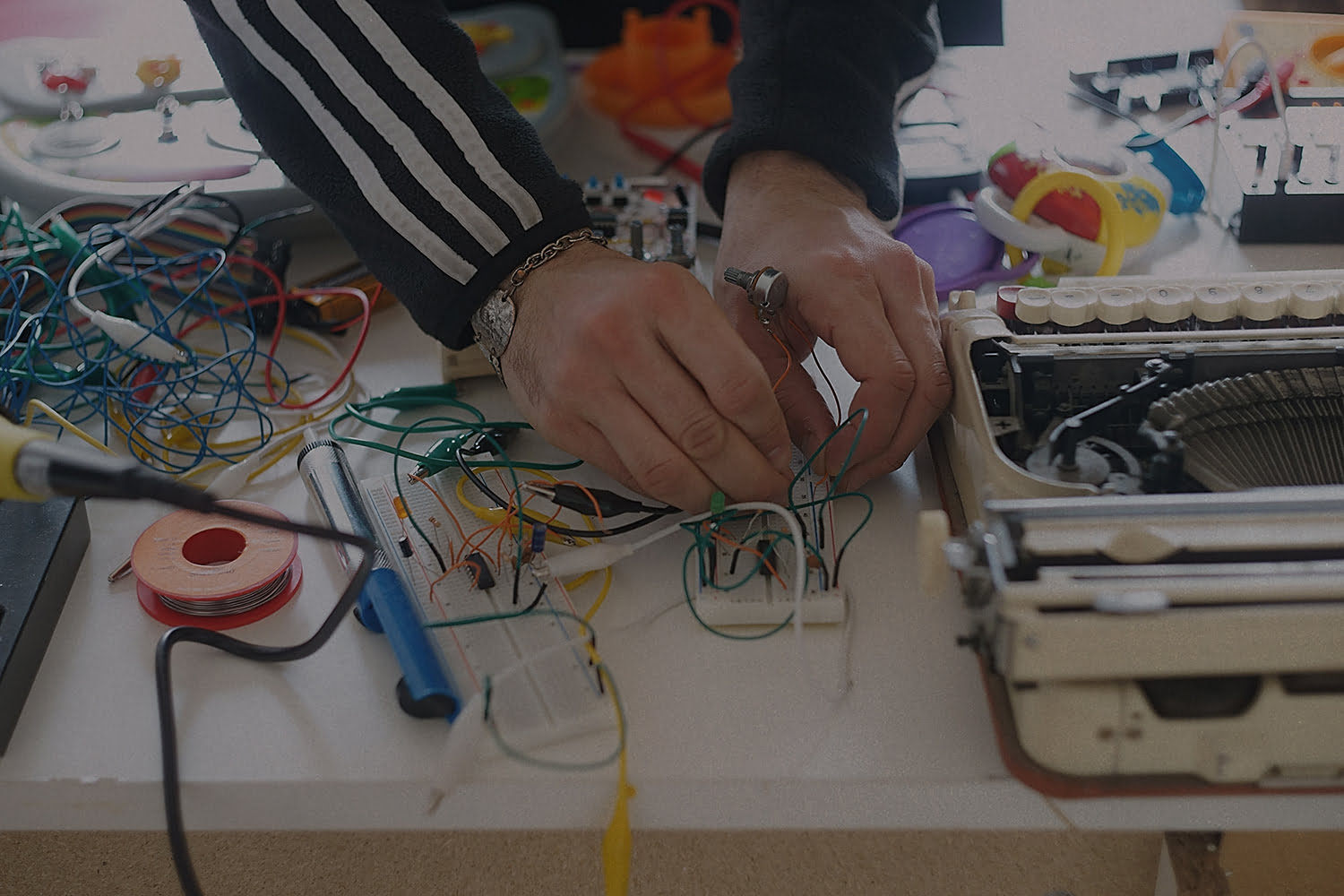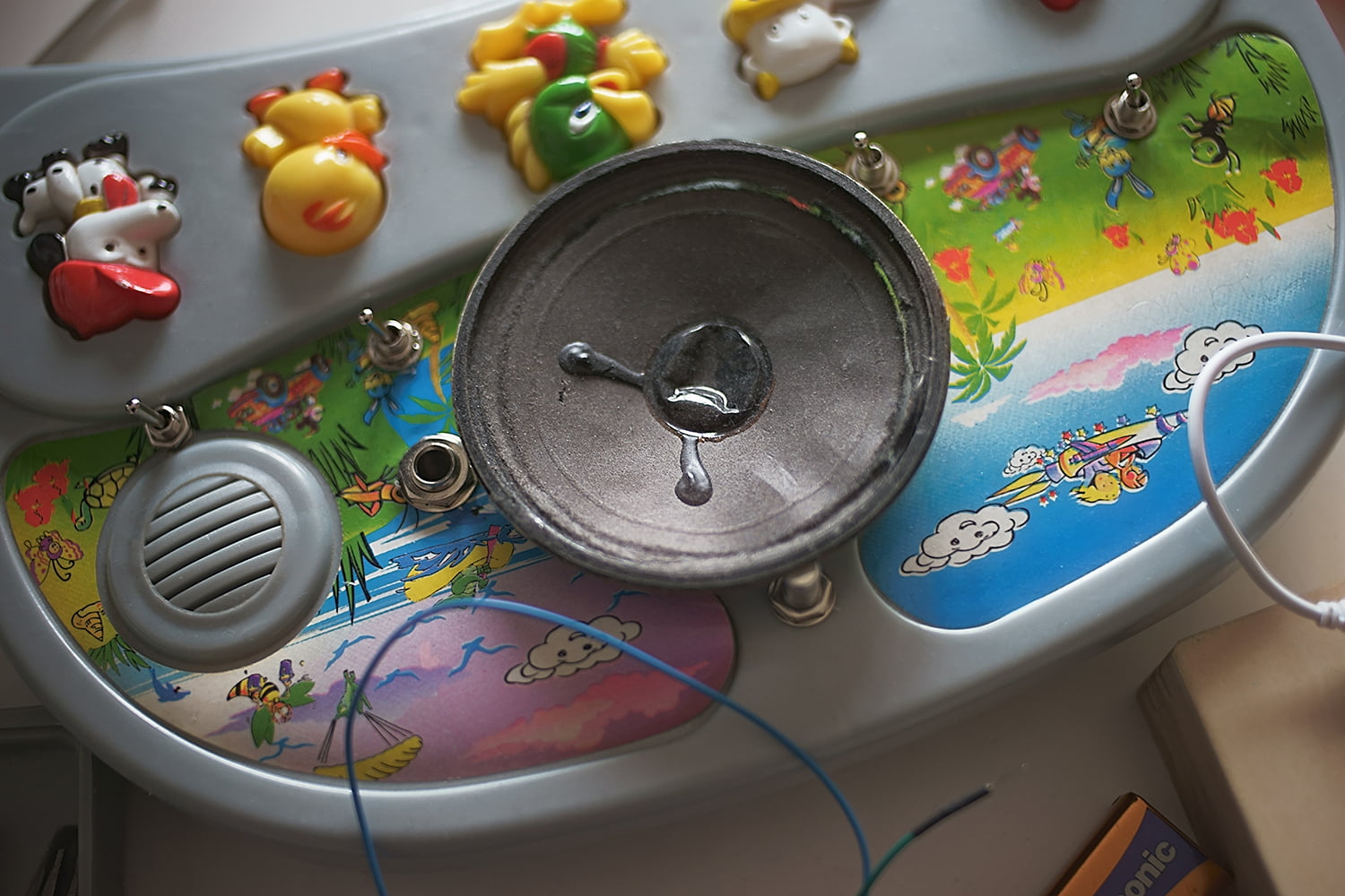 Los analógicos han tenido el papel principal en este proyecto. De éstos salen las ideas sonoras primarias. Su comportamiento imprevisible los hace ideales para la creatividad. Dentro de éstos, está también la customización de los juguetes a pilas.