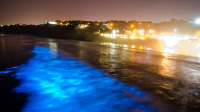 Al chocar entre ellas, las algas que están en el agua generan una luminiscencia azul que crea imágenes de sorprendente belleza al ser observadas desde la costa, en un fenómeno que, sin embargo, resulta peligroso para los peces, ya que disminuye el nivel de oxígeno en el agua. Curiosamente, durante el día, el mismo proceso en ocasiones provoca que las olas se tiñan de un color rojizo-marrón que no resulta tan agradable a la vista.