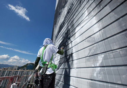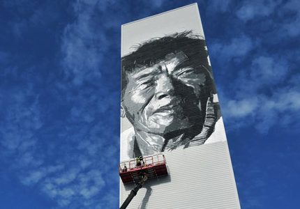 El artista alemán Hendrik Beikirch ha creado sobre la pared de una torre residencial en Corea del Sur el grafiti más alto de Asia, que representa a un viejo pescador como el símbolo de la clase trabajadora.