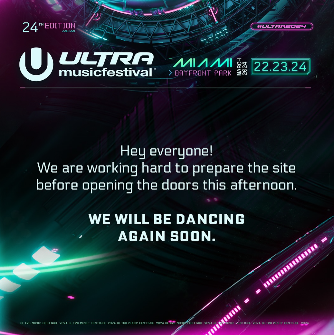 Mientras tanto, Ultra muestra un aura de esperanza en su declaración más reciente, asegurando que están trabajando duro para que el festival esté en perfectas condiciones para una gran inauguración esta tarde: