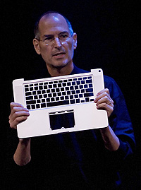 Steve Jobs ha presentado los nuevos portátiles de la compañía de la manzana. La gama MacBook se renueva con una principal y esperada novedad: las carcasas pasan a ser de aluminio y de una sola pieza. Asimismo, se mejora considerablemente su capacidad gráfica y de procesamiento. Una renovación amplia más que un lavado de cara.