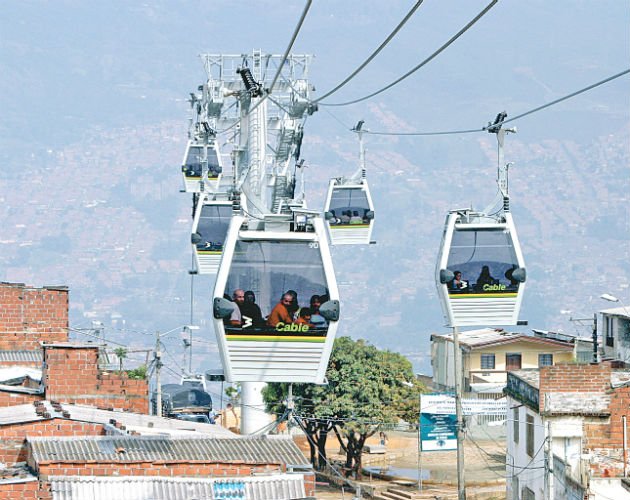 4. El cable aéreo que moviliza: el Metrocable es un teleférico que está integrado al sistema Metro y que actualmente cubre dos sectores a los que es difícil acceder por falta de vías adecuadas. Este sistema, que opera en las comunas 1 y 13, fue uno de los primeros en el mundo en utilizarse para transporte y no para turismo, como es lo usual. Además, el Metrocable fue una de las razones por las cuales Medellín ganó el Sustainable Transport Award 2012 (Ver artículo).