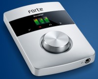 Forte esta vez sin tilde ofrece grabación con convertidores a 24-bit/192kHz, dos entradas analógicas (en un cable breakout), dos previos RedNet y cuatro salidas analógicas (incorporadas en la propia carcasa). En el panel frontal vemos un display OLED que muestra los niveles, botones sensibles al toque y un potenciómetro de control de gran tamaño, cuya función asignada puede verse en el display.