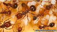 Reinas de la hormiga parasitaria logran engañar a las rojas de fuego y penetrar su nido, por ejemplo. Allí, roban y consumen todo el alimento, causando la muerte de las reinas de la colonia por inanición.