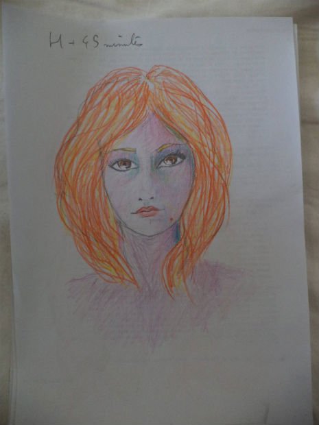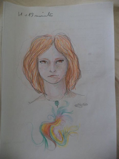 4 hours and 45 minutes in (from this moment, she drew with very dim light).