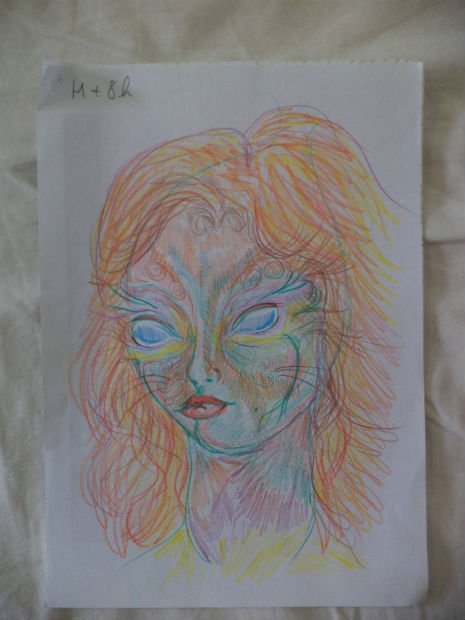 I’m sure by now, a lot of us have seen self-portraits drawn during the course of LSD trips. The majority of examples I could find were all done by men. So, it’s pretty interesting to see a lady’s take on the lysergic experience.