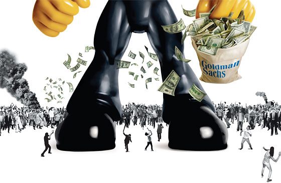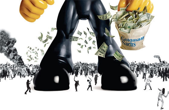 Cuando preguntas quien es Goldman Sachs, la gran mayoría contestan: “Me suena”. (Goldman Sachs es un organismo Bilderberg, en forma de banco. En España lo tenemos metido hasta en la sopa. Son los actuales auditores de Bankia, poseen el monopolio de la alimentación y los productos farmacéuticos y muchas más intrusiones en empresas como Iberdrola o Gas Natural. No me extenderé en este tema. Si te interesa, es tan fácil como escribir “Goldman Sachs” en tu buscador. Te vas a aburrir con tanto resultado.)