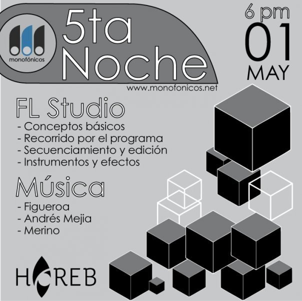Este VIERNES 1 de Mayo (Festivo) se realizara la 5ª Noche del Netlabel MONOFONICOS en Horeb Medellin, realizando una charla dirigida hacia el software FL Studio (antiguo Fruity Loops).