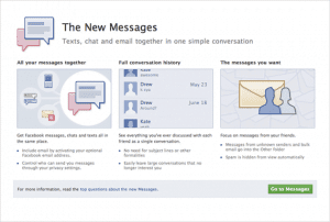 Mientras que Facebook esta diciendo que por el momento solo en Estados Unidos el nuevo servicio de Facebook email estara disponible por el momento, acabamos de descubrir que puedes acelerar el proceso dirigiendote a la siguiente direccion: http://www.facebook.com/about/messages/ y hacer click en el Boton “Go To Messages” o “Pedir Invitacion” , Intentalo.
