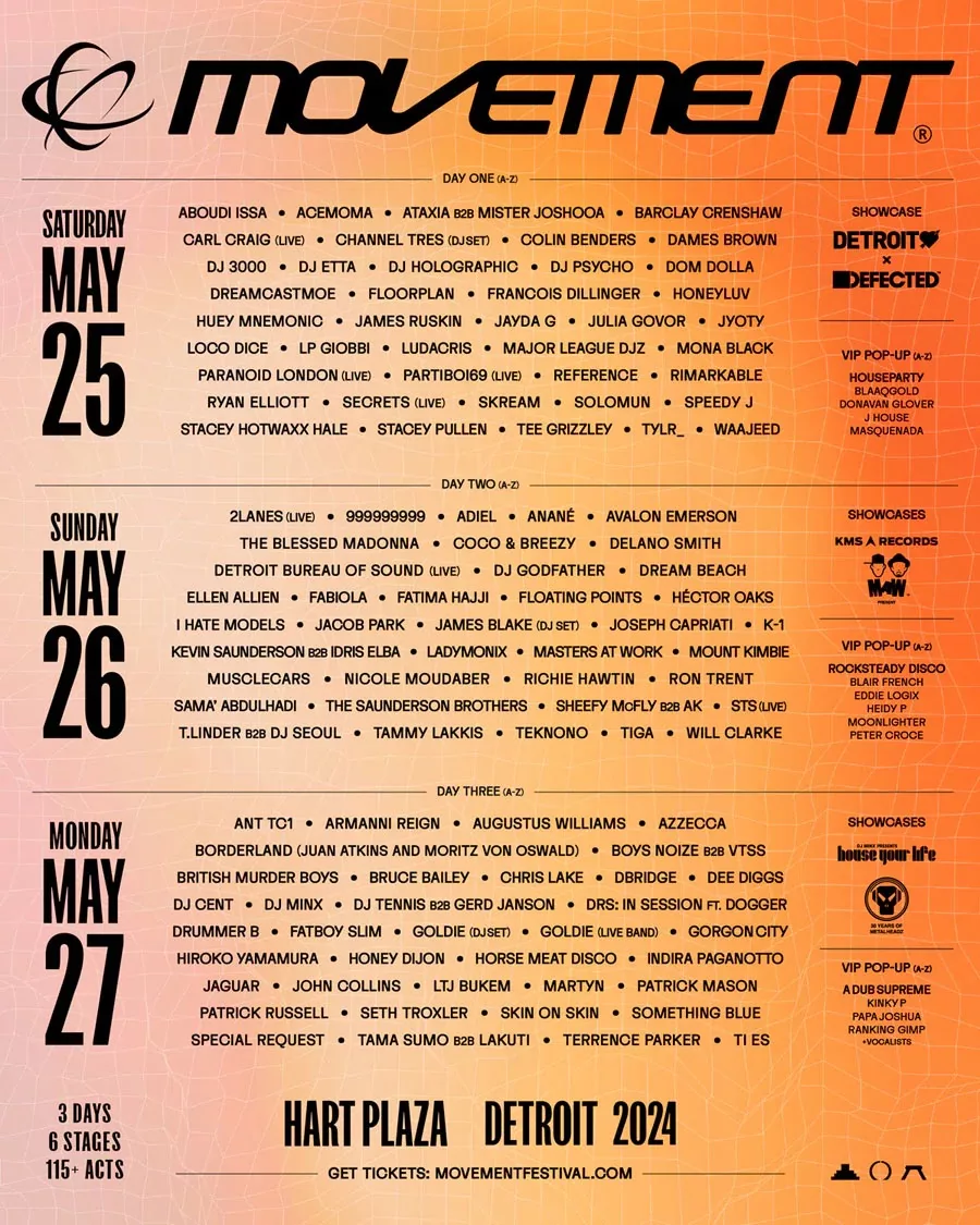 Movement Festival se desarrollará en la ciudad de Detroit el próximo 25, 26 y 27 de mayo del presente año, un fin de semana memorial en el Hart Plaza, esto es lo que debes tener en cuenta para poder asistir: