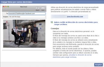 Una opción que se suele pasar por alto es la de utilizar el correo electrónico para determinadas tareas. Lo primero de todo, necesitas una dirección personalizada. Esta se obtiene en Facebook móvil. Se te generará una dirección estilo algo123@m.facebook.com, a la cual puedes enviar mensaje para lo siguiente:
