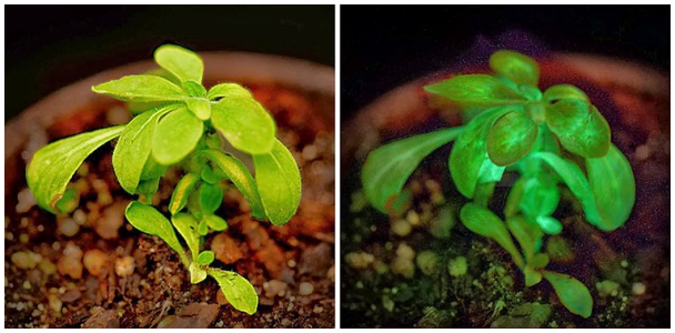 « Bioglow ha desarrollado la primera planta que genera luz sin necesidad de luz ultravioleta, productos químicos ni por supuesto energía eléctrica. Las plantas utilizadas son de la especie ornamental Nicotiana alata y los genes para la producción de luz provienen de bacterias marinas introducidos en los cloroplastos de los vegetales. »