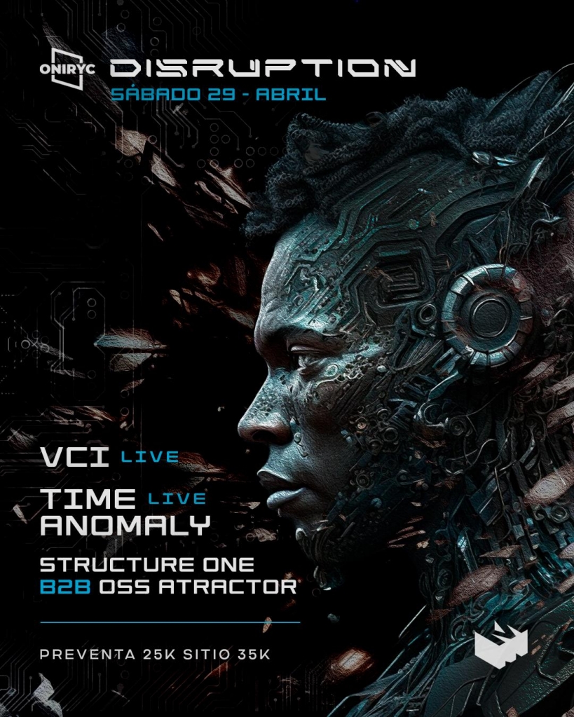 El próximo sábado 29 de abril, el colectivo paisa Oniryc presentará el lanzamiento de laagrupación Time Anomaly (Live) en la edición #5 de Disruption, un ciclo de eventos cuyoobjetivo es proponer formatos poco convencionales en la pista de baile, esta vez con losartistas invitados VCI (Live) desde Pereira junto al B2B de Oss Atractor & Structure One.