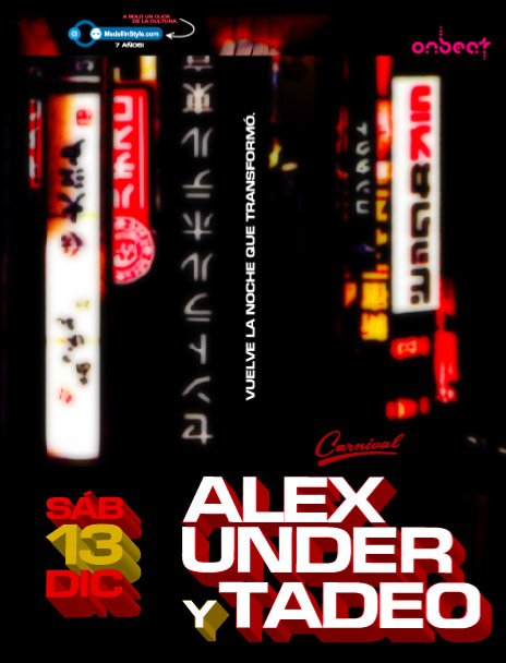 Alex Under y Tadeo Próximamente estarán con nosotros… Sábado 13 de Diciembre… Recordando la noche que transformo la manera de sentir la música electrónica en nuestra ciudad.